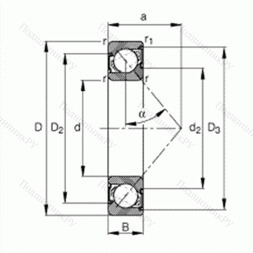 Угол контакта α = 40°, контактное уплотнение с двух сторон