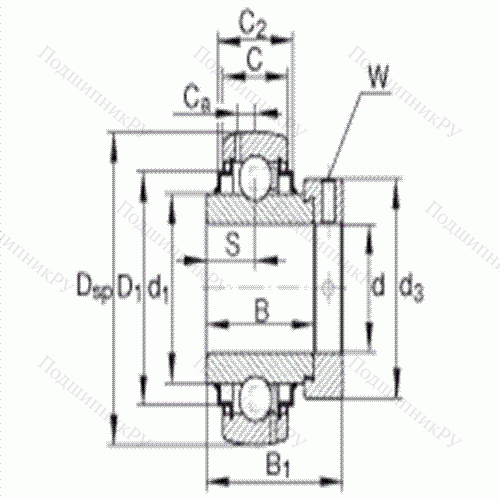 сферическое наружное кольцо, фиксация эксцентриковым закрепительным кольцом, двусторонние R-уплотнения, размер отверстия в дюймах