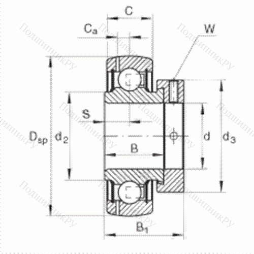 сферическое наружное кольцо, фиксация эксцентриковым закрепительным кольцом, двусторонние P-уплотнения