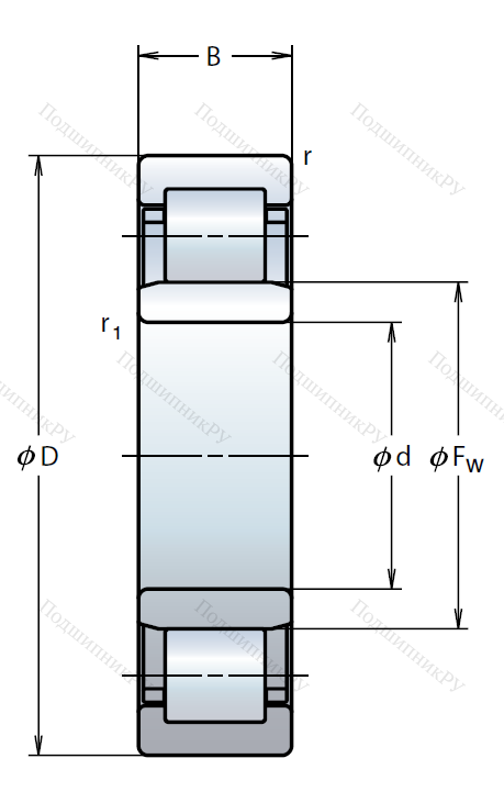 Роликовый цилиндрический подшипник NU 2210 ET C3, это разновидность однорядного роликоподшипника в метрическом исполнении.