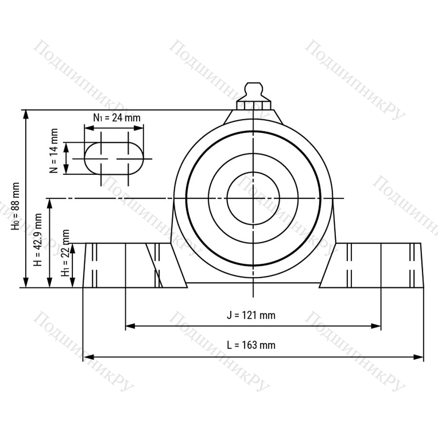 - со встроенным смазочным ниппелем для удобного повторного смазывания вкладыша подшипника, если требуется повторное смазывание в сложных условиях эксплуатации