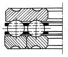 Подшипник шариковый упорный 738722 в конструкцию которого входит свободная внешняя и тугая внутренняя шины (последняя жестко фиксируется на валу), сепаратор и заключенные в нем тела качения. При наличии двух рядов шарикоподшипников изделие комплектуется парой сепараторов. Может иметь подкладную обойму.